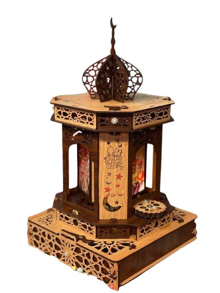 - مع كل ضوء ينبعث من هذا الفانوس الخشبي المحفور بالليزر، ستشعر بروح رمضان تحيط بك. بتصميمه الأنيق وزخارفه الإسلامية يضيفان لمسة من السكينة والبهجة، لتجتمع العائلة حوله في أجواء مليئة بالمحبة والرحمة. استقبل روحانيات الشهر الكريم مع فانوس خشبي أنيق، مصنوع بدقة عالية بماكينة ليزر CO2 بزخارف إسلامية رائعة، وإضاءة LED دافئة تضيف لمسة من البهجة والسكينة في بيتك.