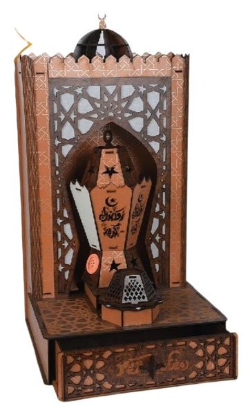 • مع كل ضوء ينبعث من هذا الفانوس الخشبي المحفور بالليزر، ستشعر بروح رمضان تحيط بك. بتصميمه الأنيق وزخارفه الإسلامية يضيفان لمسة من السكينة والبهجة، لتجتمع العائلة حوله في أجواء مليئة بالمحبة والرحمة. استقبل روحانيات الشهر الكريم مع فانوس خشبي أنيق، مصنوع بدقة عالية بماكينة ليزر CO2 بزخارف إسلامية رائعة، وإضاءة LED دافئة تضيف لمسة من البهجة والسكينة في بيتك.