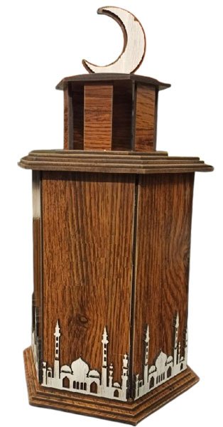 - مع كل ضوء ينبعث من هذا الفانوس الخشبي المحفور بالليزر، ستشعر بروح رمضان تحيط بك. بتصميمه الأنيق وزخارفه الإسلامية يضيفان لمسة من السكينة والبهجة، لتجتمع العائلة حوله في أجواء مليئة بالمحبة والرحمة. استقبل روحانيات الشهر الكريم مع فانوس خشبي أنيق، مصنوع بدقة عالية بماكينة ليزر CO2 بزخارف إسلامية رائعة، وإضاءة LED دافئة تضيف لمسة من البهجة والسكينة في بيتك.