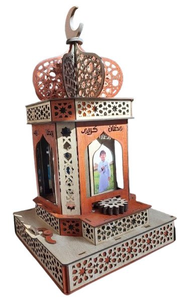 - مع كل ضوء ينبعث من هذا الفانوس الخشبي المحفور بالليزر، ستشعر بروح رمضان تحيط بك. بتصميمه الأنيق وزخارفه الإسلامية يضيفان لمسة من السكينة والبهجة، لتجتمع العائلة حوله في أجواء مليئة بالمحبة والرحمة. استقبل روحانيات الشهر الكريم مع فانوس خشبي أنيق، مصنوع بدقة عالية بماكينة ليزر CO2 بزخارف إسلامية رائعة، وإضاءة LED دافئة تضيف لمسة من البهجة والسكينة في بيتك.